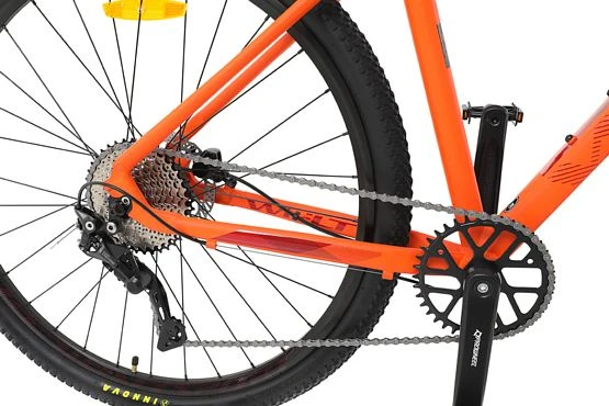 The Hagen HLO 32 anodized shock absorber with 100 mm of travel dampens vibrations and makes off-road riding more enjoyable.