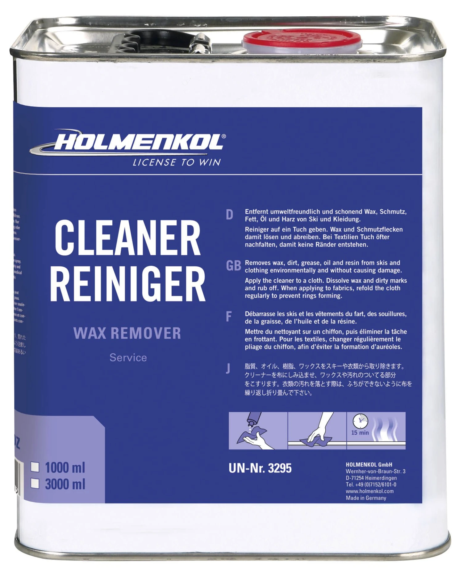Special cleaner for removing grease, oil, resin and wax from hands, ski gliding surfaces and clothes.