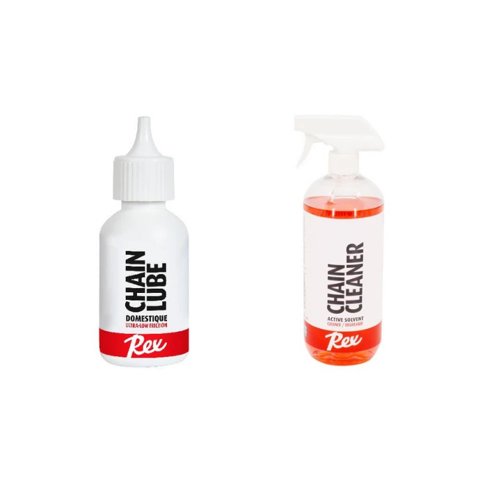 Now use Rex Domestique Chain lube. One drop for every chainlink. Crank the pedal and wipe off remaining lube. How to use video.