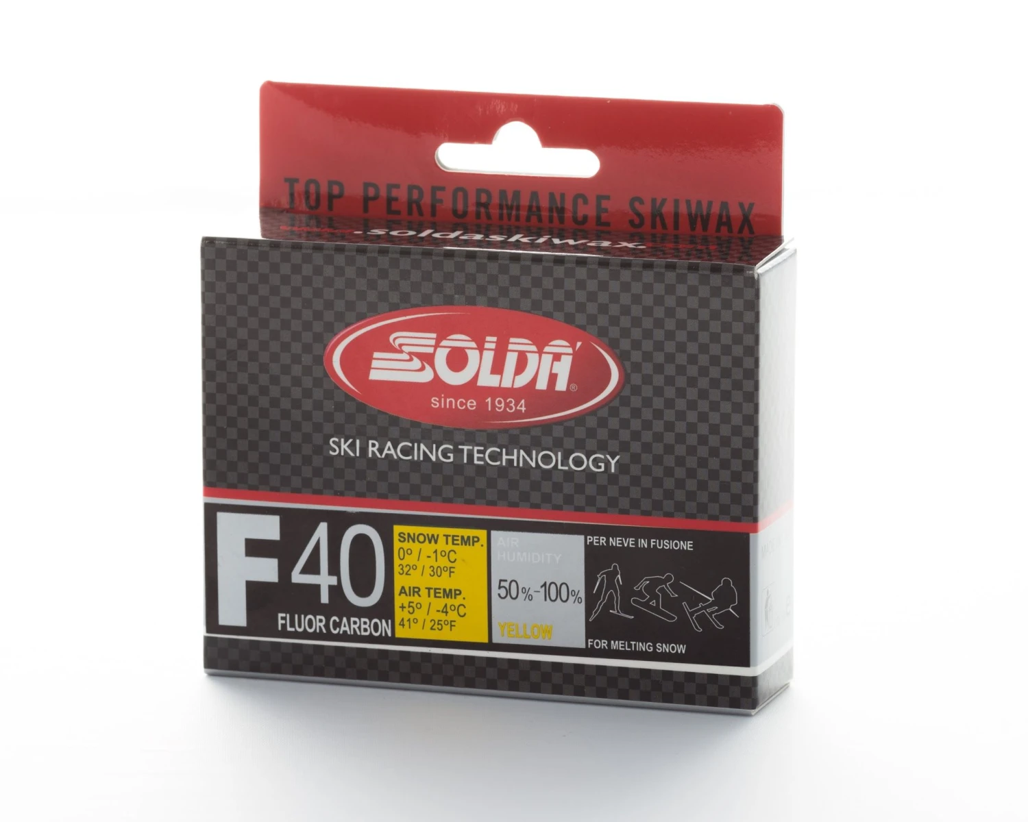 Yellow extra fluor glide wax is to be used for melting snow at snow temperature 0°/-1°C and air temperature +5°/-4°C.
